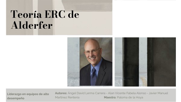 La teoría ERG fue desarrollada por el psicólogo estadounidense Clayton Alderfer entre 1961 y 1978. La teoría ERG es una teoría motivacional modelo basados en jerarquía de necesidades de Maslow. La teoría ERG se basa en un acrónimo de tres grupos de core : existencia, relación y crecimiento.