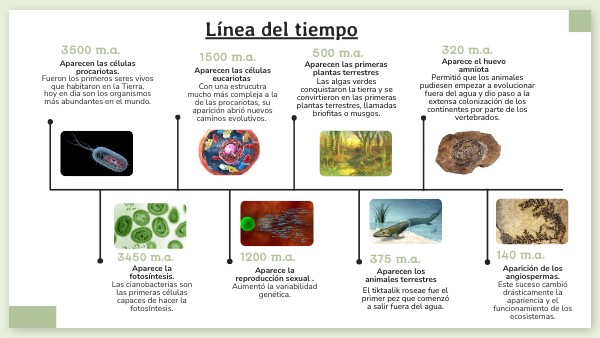 Aparecen las células procariotas.Fueron los primeros seres vivos que habitaron en la Tierra, hoy en dia son los organismos más abundantes en el mundo.