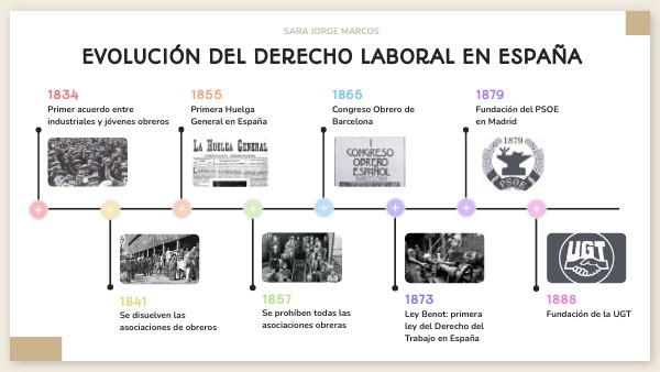 Aguado, A. (2019). La primera ley de huelga de 1909. Universitas Miguel Hernández. Cope. (2021). La historia sobre cómo el Rey Felipe II inventó la jornada laboral de ocho horas. Cope. https://www.cope.es/actualidad/sociedad/noticias/historia-sobre-como-rey-felipe-invento-jornada-laboral-ocho-horas-20211119_1628375 Decreto del 26 de enero de 1944 por el que se aprueba el texto refundido del Libro I de la Ley de Contrato de Trabajo. (1944). Boletín Oficial del Estado, 1627 - 1634. https://boe.es//buscar/doc.php?id=BOE-A-1944-1906 Dudas Legislativas. (2022). Constitución Española: Estructura y Contenido. Dudas Legislativas. https://dudaslegislativas.com/constitucion-espanola-estructura-contenido/ El Salariado. (2015). Los orígenes de la CNT. El Salariado. https://elsalariado.info/2015/04/19/los-origenes-de-la-cnt/ El Salariado. (2017). La ola de huelgas de 1946-47 durante el franquismo. El Salariado. https://elsalariado.info/2017/07/18/la-ola-de-huelgas-de-1946-47-durante-el-franquismo/ Fundación Pablo Iglesias. (2022). 1879 Fundación del Partido Socialista Obrero Español PSOE. Fundación José Barreiro. https://fsa-psoe.org/fjb/evento/1879-fundacion-del-psoe/ González-Bueno, P. (2022). El Fuero del Trabajo. Fundación Nacional Francisco Franco. https://fnff.es/historia/el-fuero-del-trabajo/ Górriz, R., y Babiano, J. (2021). 1931, una República democrática de trabajadores. Sinpermiso. https://www.sinpermiso.info/textos/1931-una-republica-democratica-de-trabajadores Laso, J.M. (2006). Historia del movimiento obrero en España. El Catoblepas, 52, 6.