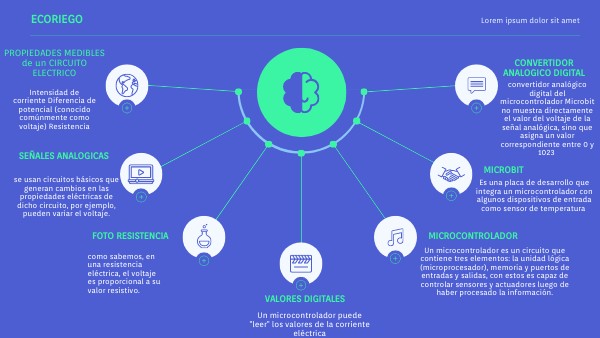Un microcontrolador es un circuito que contiene tres elementos: la unidad lógica (microprocesador), memoria y puertos de entradas y salidas, con estos es capaz de controlar sensores y actuadores luego de haber procesado la información.