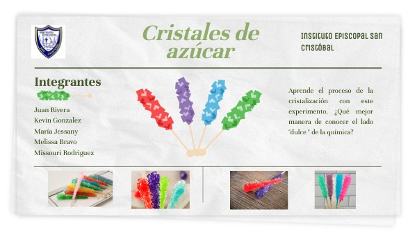 1. Siguiendo los pasos del experimento se obtuvieron resultados similares a lo esperado; es decir, se produjo la formación de cristales de azúcar.2. El experimento de formación de cristales de azúcar es sencillo y económico de realizar ya que solo requiere de ¡agua y azúcar!.3. El proceso para la formación de estos cristales es relativamente lento.
