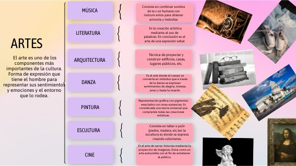 El arte es uno de los componentes más importantes de la cultura. Forma de expresión que tiene el hombre para representar sus sentimientos y emociones y el entorno que lo rodea.