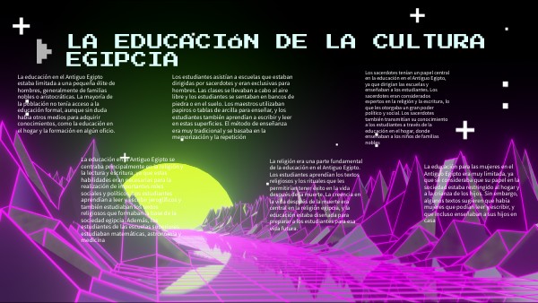 La educación en el Antiguo Egipto se centraba principalmente en la religión y la lectura y escritura, ya que estas habilidades eran necesarias para la realización de importantes roles sociales y políticos. Los estudiantes aprendían a leer y escribir jeroglíficos y también estudiaban los textos religiosos que formaban la base de la sociedad egipcia. Además, los estudiantes de las escuelas superiores estudiaban matemáticas, astronomía y medicina