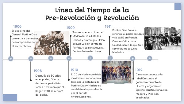 El 20 de Noviembre inicia el movimiento armado para terminar la dictadura de Porfirio Díaz y Madero es candidato a la presidencia por el partido Antireelecciones.