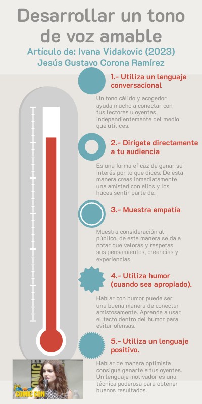 Un tono cálido y acogedor ayuda mucho a conectar con tus lectores u oyentes, independientemente del medio que utilices.