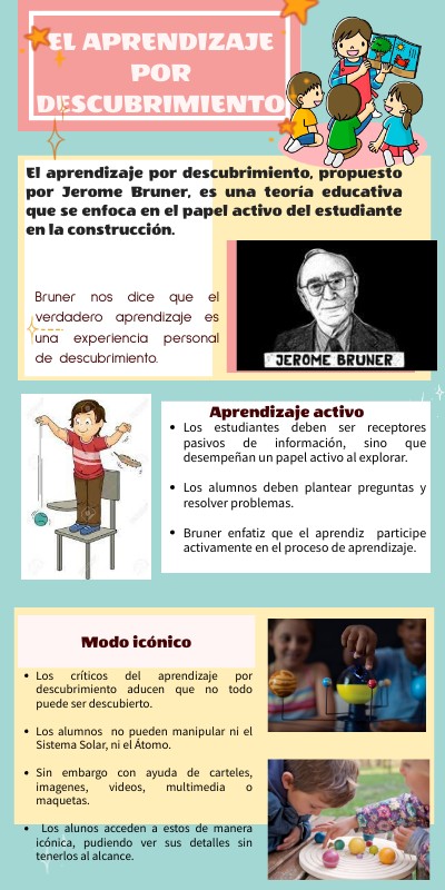 El aprendizaje por descubrimiento, propuesto por Jerome Bruner, es una teoría educativa que se enfoca en el papel activo del estudiante en la construcción.