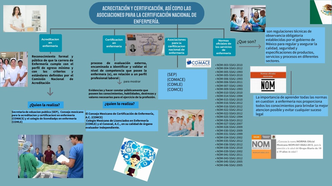 Secretaria de eduacion publica (SEP), Consejo mexicano para la acreditacion y certificacioni en enfermeria (COMACE) y el colegio de licendiadps en enfermeria (COMLE)