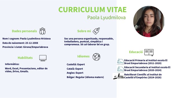 Nom i cognom: Paola Lyudmilova Hristova Data de naixement: 25-12-2008 Provincia i ciutat: Girona/Empuriabrava