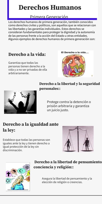 Estos derechos son parte fundamental de la Declaración Universal de Derechos Humanos adoptada por la Asamblea General de las Naciones Unidas en 1948. Los derechos de primera generación buscan proteger la libertad y la seguridad de las personas ante posibles abusos por parte del Estado o de terceros.