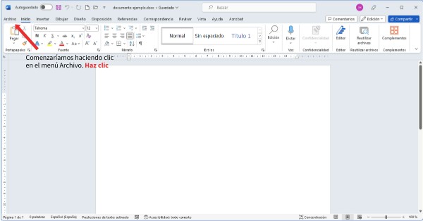 Comenzaríamos haciendo clic en el menú Archivo. Haz clic