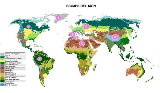 Localització: Nord d'Àfrica, Oceania i America Clima: Al desert càlid durant el dia té unes màximes de 55 graus i durant la nit -10 graus. Comparació: Vegetació (flora): Per les condicions climatològiques, la fauna i la flora s'han anat adaptant considerablement a unes condicions dures de supervivència on l'aigua escasseja. Sobretot es poden trobar plantes petites pero amb unes raius molt profundes perr trobar el minerals i l’humitat de la terra. Característiques del sòl: Fauna: La fauna més comuna en un desert són els escorpins, taràntules, tot tipus de serps, tot tipus de rèptils com les iguanes, coiots, i animals més grans com els camells. En el cas de les aus, la majoria són nòmades