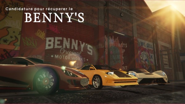 Si j'obtiens le Benny's, premierement je ferais MINIMUM 2 events divers et variés (ex; courses, rassemblements autos etc) par mois.Deuxiemement, je recruterais un maximum de gens pour developper le rp civil. Niveau hiérarchie, employé etc, je pense marcher basiquement, avec PDG, CO-PDG, chef d'équipe, expérimenté, novices, et recrue.