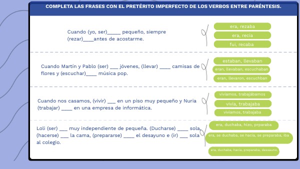 Completa las frases con el pretérito imperfecto de los verbos entre paréntesis.