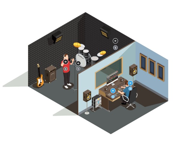 It seperates the inside of the recording studio from the outside environment to avoid having unnecessary background noise.