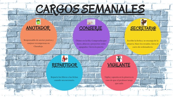 Escribe la fecha y se encarga de la pizarra. Hace los recados. Lleva el carro de ordenadores.