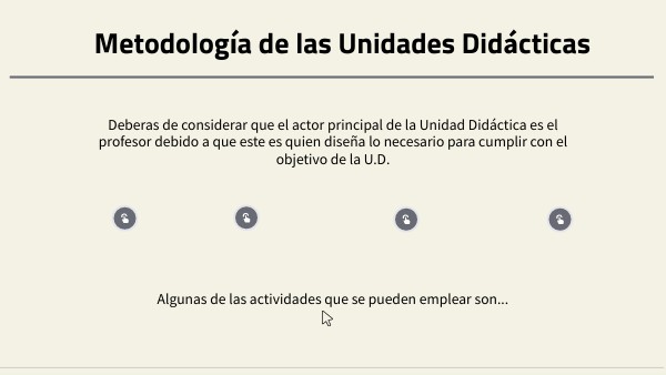 Deberas de considerar que el actor principal de la Unidad Didáctica es el profesor debido a que este es quien diseña lo necesario para cumplir con el objetivo de la U.D.
