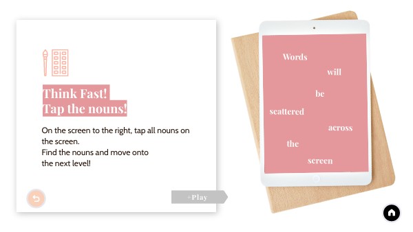 On the screen to the right, tap all nouns on the screen. Find the nouns and move onto the next level!