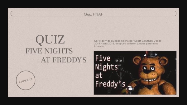 Serie de videojuegos hecha por Scott Cawthon Desde 2014 hasta 2018, despues salieron juegos pero el no intervino