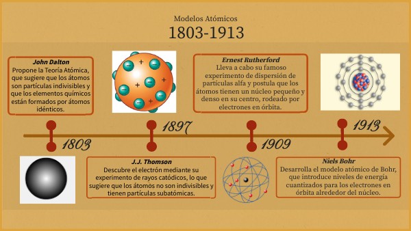 J.J. ThomsonDescubre el electrón mediante su experimento de rayos catódicos, lo que sugiere que los átomos no son indivisibles y tienen partículas subatómicas.