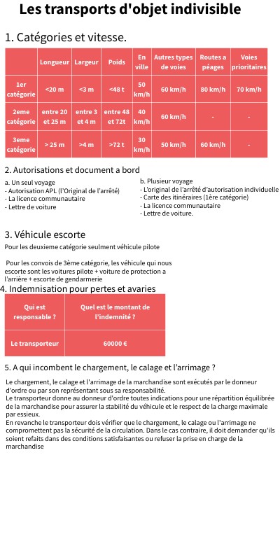 Les transports d'objet indivisible