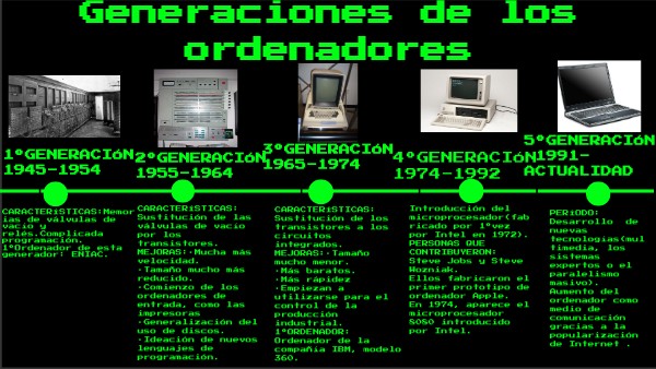CARACTERÍSTICAS: Sustitución de las válvulas de vacío por los transistores. MEJORAS:·Mucha más velocidad.·Tamaño mucho más reducido.·Comienzo de los ordenadores de entrada, como las impresoras·Generalización del uso de discos.·Ideación de nuevos lenguajes de programación.