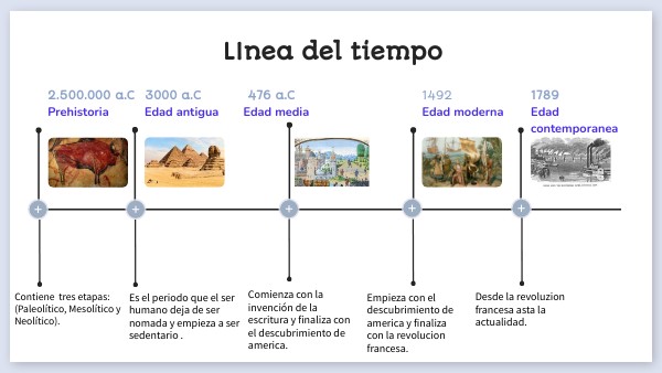 Comienza con la invención de la escritura y finaliza con el descubrimiento de america.