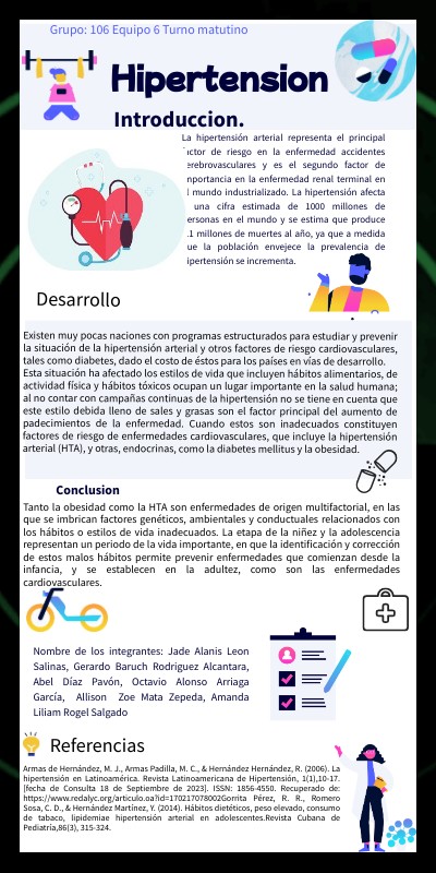 Armas de Hernández, M. J., Armas Padilla, M. C., & Hernández Hernández, R. (2006). La hipertensión en Latinoamérica. Revista Latinoamericana de Hipertensión, 1(1),10-17.[fecha de Consulta 18 de Septiembre de 2023]. ISSN: 1856-4550. Recuperado de: https://www.redalyc.org/articulo.oa?id=170217078002Gorrita Pérez, R. R., Romero Sosa, C. D., & Hernández Martínez, Y. (2014). Hábitos dietéticos, peso elevado, consumo de tabaco, lipidemiae hipertensión arterial en adolescentes.Revista Cubana de Pediatría,86(3), 315-324.