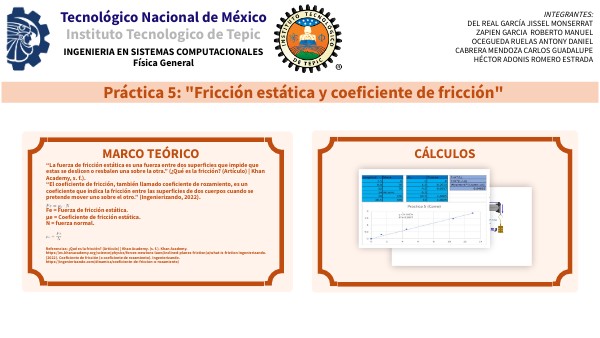 Referencias: ¿Qué es la fricción? (Artículo) | Khan Academy. (s. f.). Khan Academy. https://es.khanacademy.org/science/physics/forces-newtons-laws/inclined-planes-friction/a/what-is-friction Ingenierizando. (2022). Coeficiente de fricción (o coeficiente de rozamiento). Ingenierizando. https://ingenierizando.com/dinamica/coeficiente-de-friccion-o-rozamiento/