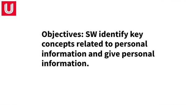 Objectives: SW identify key concepts related to personal information and give personal information.