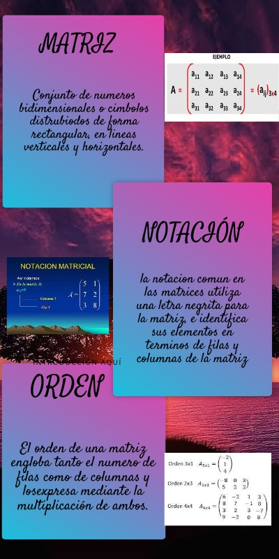 El orden de una matriz engloba tanto el numero de filas como de columnas y losexpresa mediante la multiplicación de ambos.