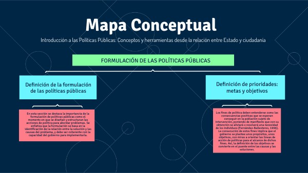 En esta sección se destaca la importancia de la formulación de políticas públicas como el momento en que se diseñan y estructuran las acciones de política para abordar problemas. Se enfatiza que la formulación se basa en la identificación de la relación entre la solución y las causas del problema, y debe ser coherente con la capacidad del gobierno para implementarla.