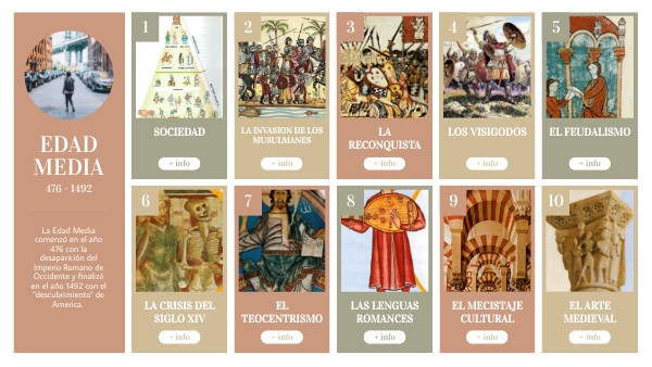 La Edad Media comenzó en el año 476 con la desaparición del Imperio Romano de Occidente y finalizó en el año 1492 con el "descubrimiento" de America.