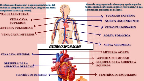 El sistema cardiovascular, o aparato circulatorio, del cuerpo se compone del corazón, la sangre y los vasos sanguíneos (arterias y venas).