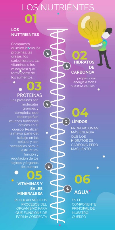 Compuesto químico (como las proteínas, las grasas, los carbohidratos, las vitaminas o los minerales) que forma parte de los alimentos.