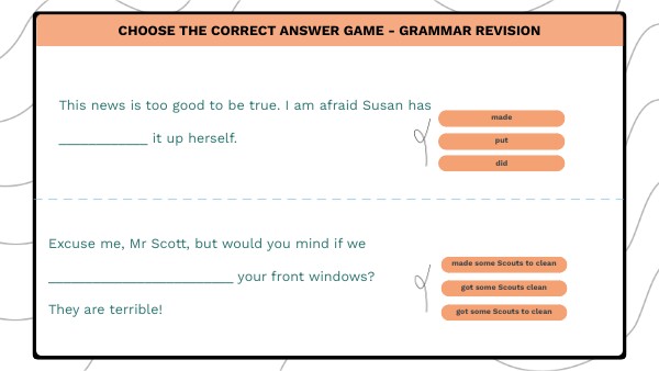 Choose the correct answer GAME - grammar revision