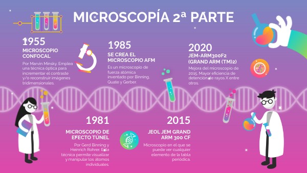 Por Gerd Binning y Heinrich Rohrer. Esta técnica permite visualizar y manipular los átomos individuales.