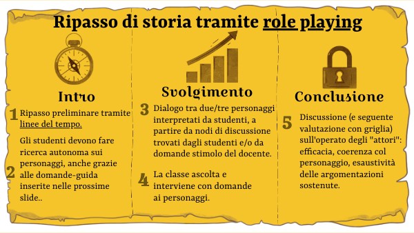 Discussione (e seguente valutazione con griglia) sull'operato degli "attori": efficacia, coerenza col personaggio, esaustività delle argomentazioni sostenute.