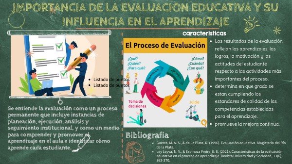 - Ley Leyva, N. V., & Espinoza Freire, E. E. (2021). Características de la evaluación educativa en el proceso de aprendizaje. Revista Universidad y Sociedad, 13(6), 363-370.