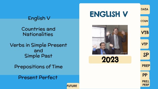 English V Countries and Nationalities Verbs in Simple Present and Simple Past Prepositions of Time Present Perfect