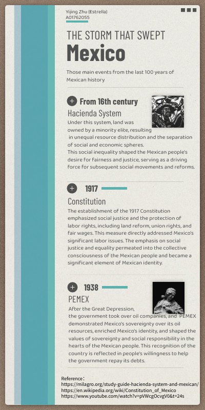 Under this system, land was owned by a minority elite, resulting in unequal resource distribution and the separation of social and economic spheres. This social inequality shaped the Mexican people's desire for fairness and justice, serving as a driving force for subsequent social movements and reforms.
