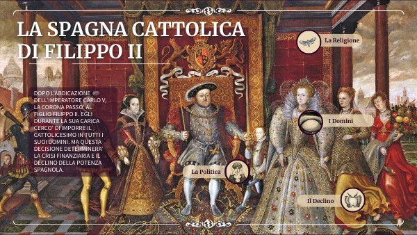 DOPO L'ABDICAZIONE DELL'IMPERATORE CARLO V, LA CORONA PASSO' AL FIGLIO FILIPPO II. EGLI DURANTE LA SUA CARICA CERCO' DI IMPORRE IL CATTOLICESIMO IN TUTTI I SUOI DOMINI. MA QUESTA DECISIONE DETERMINERA' LA CRISI FINANZIARIA E IL DECLINO DELLA POTENZA SPAGNOLA.