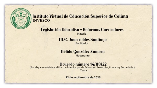 ACUERDO NÚMERO 14/08/22 POR EL QUE SE ESTABLECE EL PLAN DE ESTUDIO PARA LA EDUCACIÓN PREESCOLAR, PRIMARIA Y SECUNDARIA