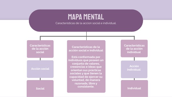 Características de la acción social e individual Está conformada por individuos que poseen un conjunto de valores, creeencias e ideas que orientan sus prácticas sociales y que tienen la capacidad de ejercer su voluntad, de manera razonada, libre y consistente.