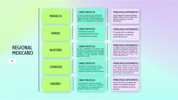 Este genero se caracteriza en contar historias que pasaron reales, en donde se pueden ocupar una mezcla de norteño con banda e inclusive mariachi