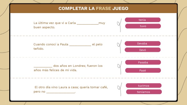 COMPLETAR LA FRASE JUEGO verbos