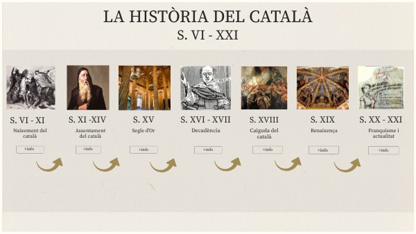 -Al principi el poble parlava català i el llatí era utilitzat per als documents oficials. Va ser al s.XII quan aparegueren els primers textos escrits. Aquestos pertanyien a l'esglèsia, ja que la gent no entenia les normes religioses en llatí. (Forum Iudicum i Les homilies d'Organyà). -L'autor Ramon Llull posà al català com a llengua de cultura i representà el naixement de la literatura catalana al s.XIII (encara que abans ja existia la literatura catalana oral). -Es creà la Cancelleria Reial, un organisme administratiu que convertí el català en llengua d'ús oficial i la codificà (s.XIII). Poc a poc el català es convertí en la llengua de prestigi. -Les quatre grans cròniques. (El llibre dels fets, la de Bernat d'Esclot, la de Ramon Muntaner i la de Pere el Cerimoniós)