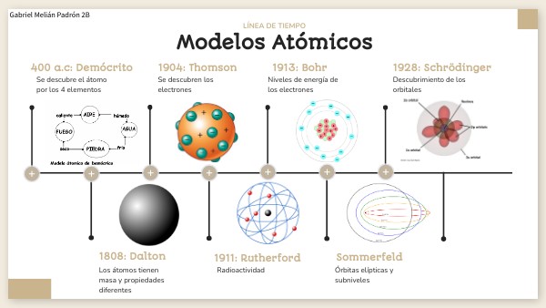 Thomson desarrolla en 1904 su modelo (también conocido como el del puding de pasas) en el que establece que los átomos son esferas cargadas positivamente en la que están incrustados los electrones en cantidad tal que el átomo resultase eléctricamente neutro.