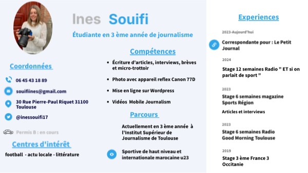 Actuellement en 3 ème année à l'Institut Supérieur de Journalisme de Toulouse