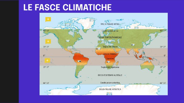 - le zone a clima polare si trovano a nord del Tropico del Cancro e a sud del Tropico del Capricorno