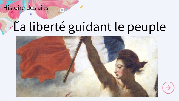 Dans le tableau, Marianne est appelée ____________. Ce tableau parle de la révolution de ________. Le roi _________ a supprimé la liberté _________. _____ __________ parle du soulèvement du peuple contre le roi. Dans le tableau l'image est construite en forme de _______.